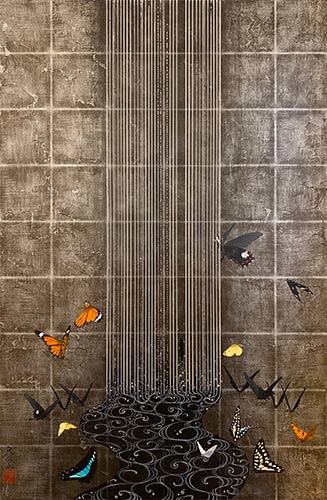 "Stream Absorption" Acrylic,metallic leaf on canvas. 31.61 x 20.86 in, 2019