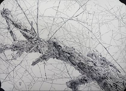 上川伸の作品の根底にはいつも「ことば」がある。ひらめいた「ことば」を常にメモに取り、それがタイトルとなり、「ことば」を表す「かたち」を創り上げていく。「かたち」が生まれる過程も、絵を描くと言うよりは立体作品を創るかの様に、大地に巨大な建造物を造るかのように土色の下地が塗られたキャンバスに想像上の構造体を描いていく。そこには、彼が生きていく中で感じとった社会の構造を可視化する、と言うコンセプトが込められている。故郷を見つめなおし生まれた「THE WALL」シリーズをはじめとする、圧倒的な力強さで迫る上川伸の世界をお楽しみください。東京では3年振りの個展となります。(みぞえ画廊 阿部和宣)