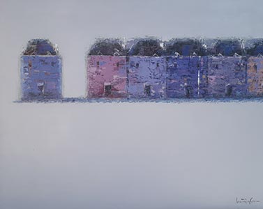 世界で活躍する韓国のアーティスト金明植は、2000年単身ニューヨークに渡った際、コーヒーショップの窓の外を通り過ぎて行く様々な人種と、車窓から見たマッチ箱の様な家々を見て、家をモチーフとして描く「East Side Story」シリーズの制作を始めた。家は人間にとって最も安息できる場所であり、その家と様々な人種が一体化したかのような一連の作品には、そこに暮らす人々の喜び、悲しみ、そして多様な人種が平和に暮らす世界への希望が込められている。常に太陽が昇る「東側(East Side)」を、希望と祈りの象徴としてシリーズ名に冠した。古希を迎える氏の記念となる本展では、アメリカ、日本、そして韓国、3つの時代を回想し制作した新作40点を展示いたします。どうぞご期待ください。