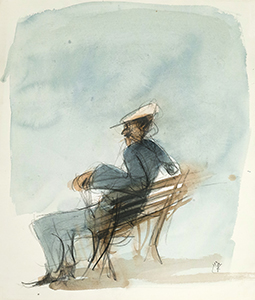 《 ベンチの男 》水彩 37.5×32.3cm /《 街路の人々 》水彩 37.5×32.3cm
