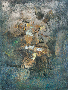 《 あらそい 》 紙に蝋 油彩 61.7×46.5cm