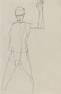 エゴン・シーレ(1890-1918) 《 表:ハインリッヒベネシュの肖像/裏:左腕を上げる立像の習作(自画像) 》 鉛筆 48.3×32cm 1913年