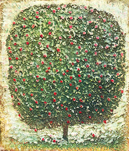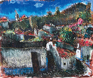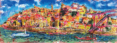 「林檎の木」F10号/「月夜の百済観音」F12号/「逆光のオヴィドス(ポルトガル)」38×45cm/「ポルト全景(ポルトガル)」56×152cm
